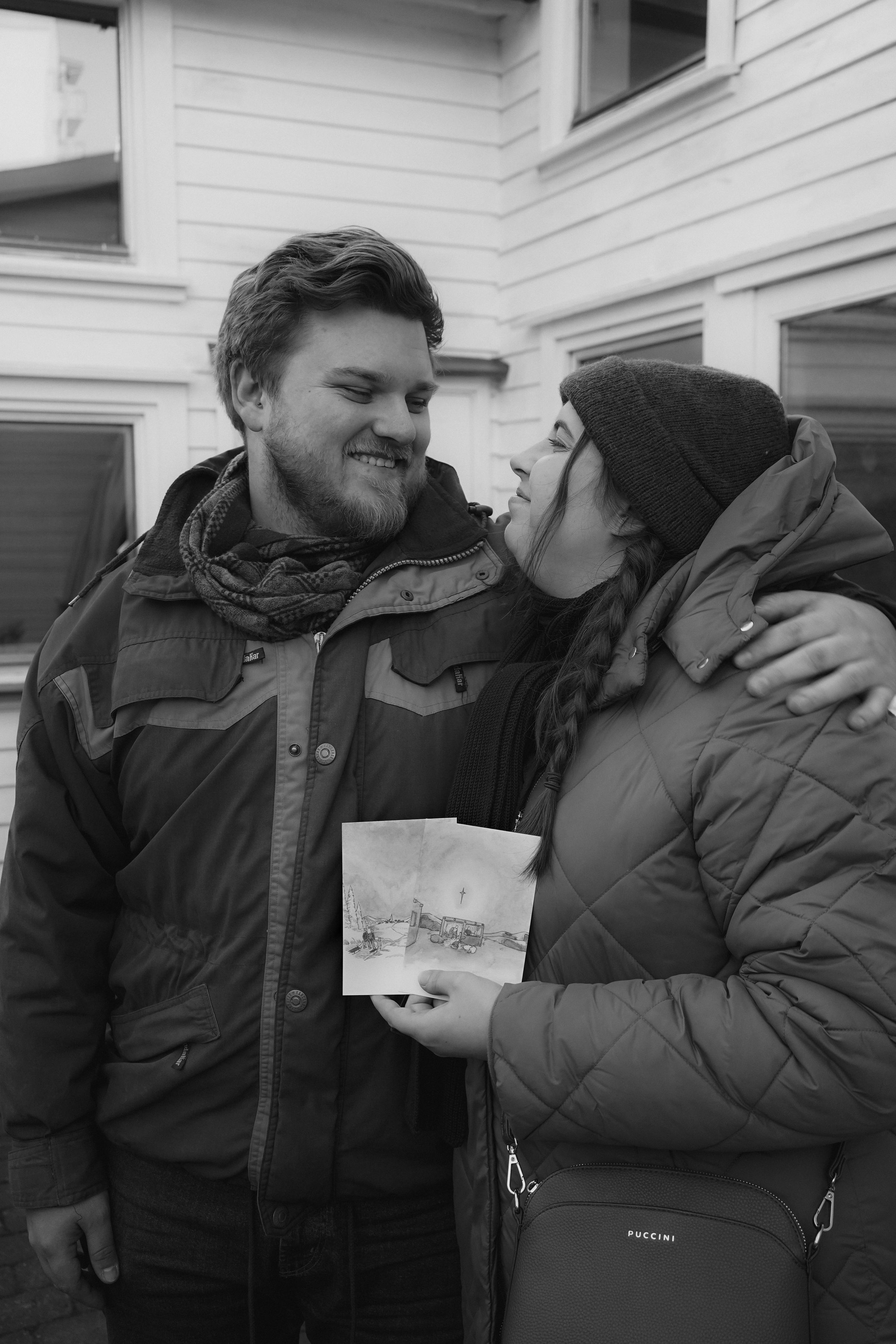 Elisabeth derimot hadde knapt holdt en pensel før de møttes. Men da Gunnar en kveld satt og tegnet ved kjøkkenbordet, ble hun nysgjerrig. «Kan jeg prøve?» spurte hun forsiktig. Den kvelden ble starten på en kreativ reise sammen med Gunnar. Høsten 2020, bestemte hun seg for å prøve akvarell maling, og kom på ideen om å lage julekort til familie og venner. Dette ble Gunnar så klart med på. Det ble fort en større prosess da folk vi viste det til ønsket å kjøpe kort av oss. Plutselig ble det mange kvelder med kakao, tente lys, og flere timer med tegning og maling på de begge, mens Gunnar fant ny inspirasjon i å se kunsten gjennom hennes øyne.